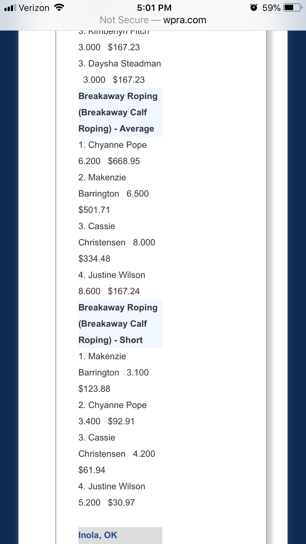 She recommended that I take it easy and not lift anything heavy for a while. She made it very clear that she didn’t want me to rodeo anymore just to be safe.